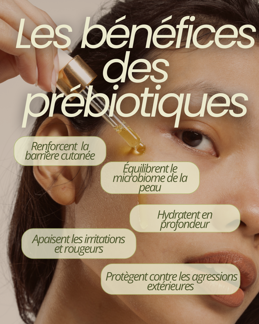 Les soins prébiotiques, comme nos sérums et brumes, renforcent la barrière cutanée et soutiennent les bonnes bactéries de la peau.